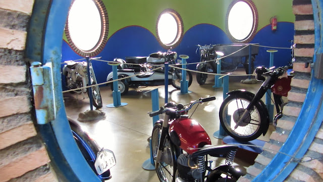 São vários pavilhões dedicados às motos e aos carros clássicos, mas sobretudo às motos. Por entre algumas “esculturas” que têm a moto como tema, chegamos ao primeiro pavilhão, onde estão exposta marcas espanholas - Ossa, Montesa, Derbi, Bultaco, Sanglas, Rieju, etç, etç -, especialmente as de pequena e média cilindrada, incluindo muitos side-cars.
